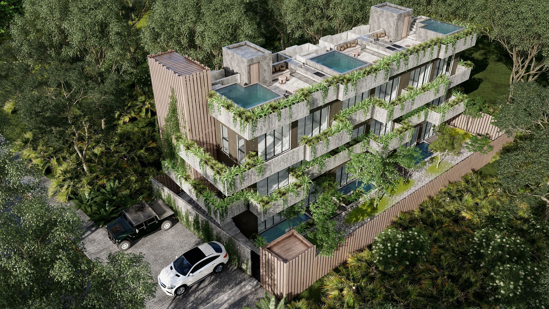 The 3-level project consists of 3 towers with a total of 30 units, with a variety of options such as studios, 2 and 3-bedroom apartments, almost all with a private plunge pool.